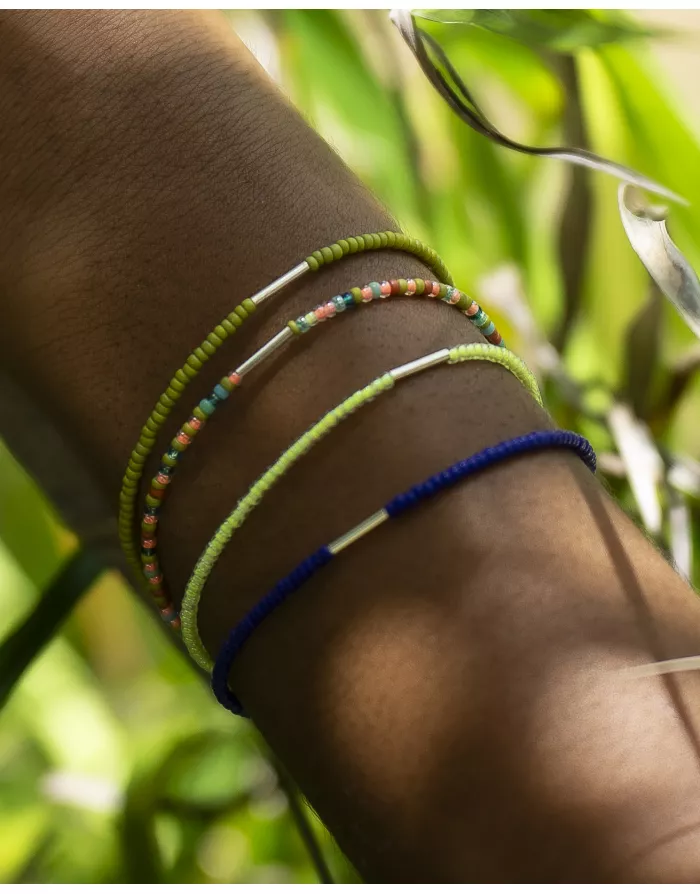 Le bracelet avec son Tube fin en argent entourée de perles en verre miyuki  est ultra fin et coloré. Ce bracelet se compose d'un tube en argent 925, de perles en verre miyuki de différentes couleurs .
