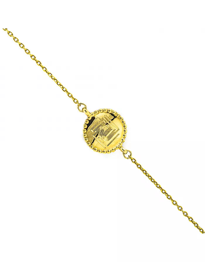 Ce bracelet est en argent 925 doré à l'or fin. Il se compose d'une chaine ornée d'un médaillon solaire gravé à la pointe de diamant.