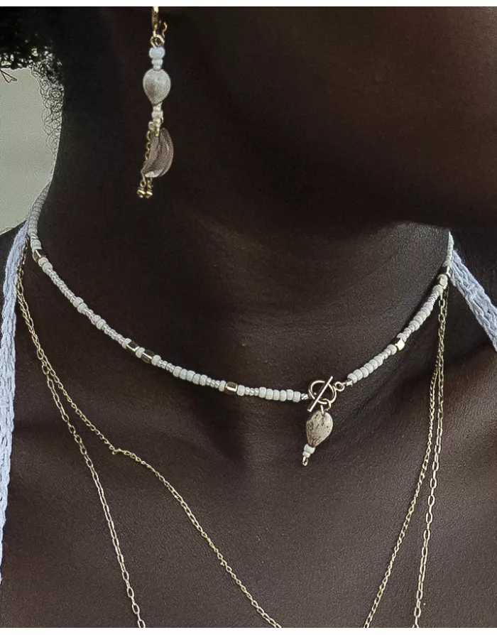 Nous utilisons un nombre très limité de perles ethniques provenant d'Afrique achetées auprès d'artisans à des prix justes et équitables. Nous avons choisi de ne pas nous fournir en grande quantité afin de respecter le travail de chaque artisan. Nos autres perles sont des perles en pierres naturelles semi-précieuses.