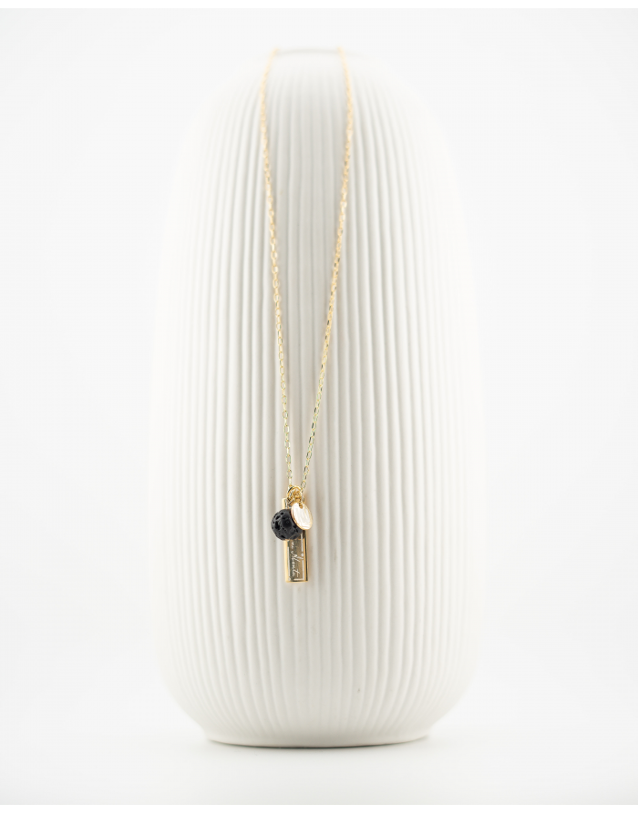Le collier mixte Kasa en Argent doré avec plaque et médaillon gravés Kubuntu et perle de lave